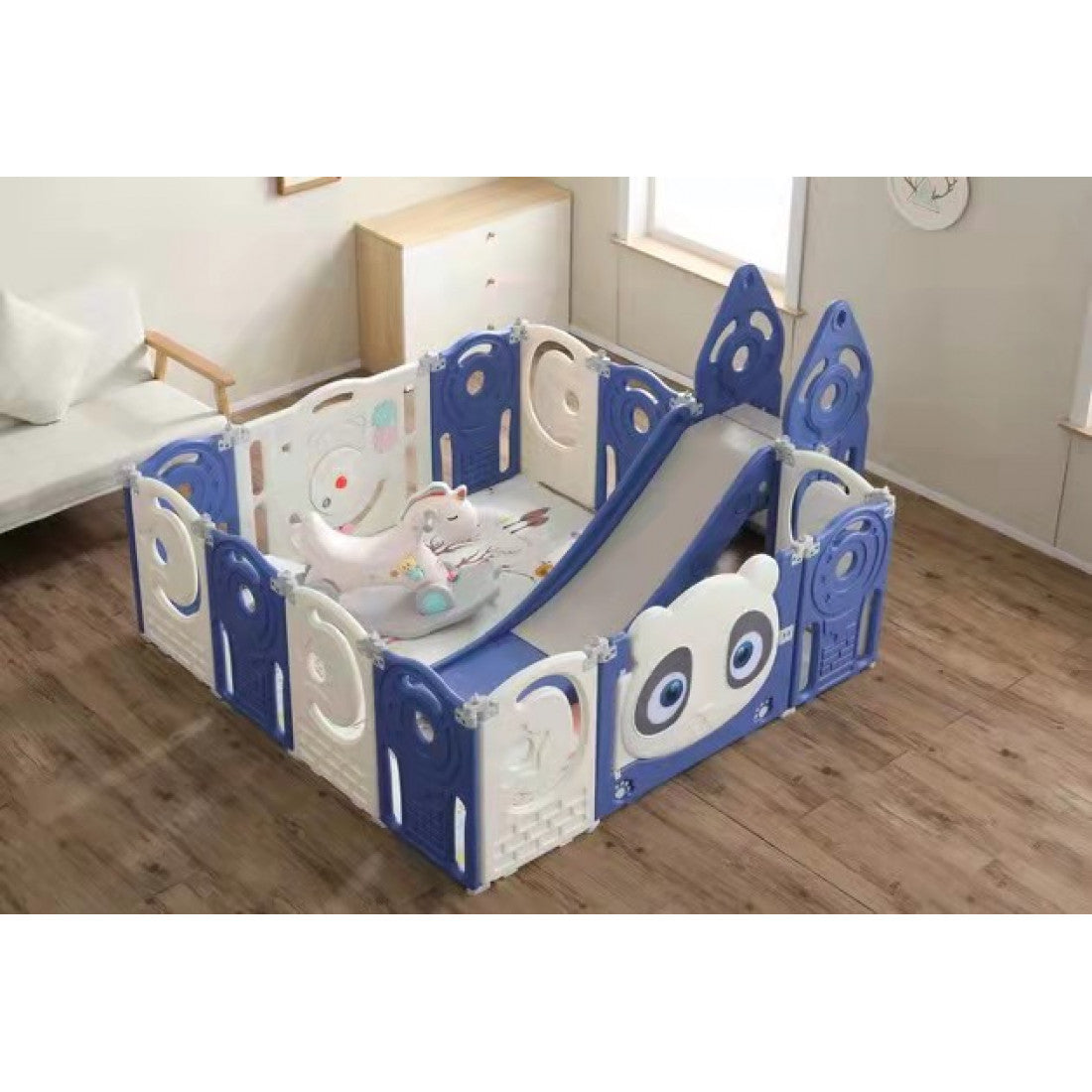 BABY FOLDABLE PLAYPEN SAFETY PLAY YARD ACTIVITY WALL WITH SLIDE 1.6 X 1.6M